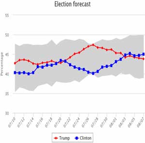 Clinton Gains Five Points To Tie Trump In Post-DNC Daybreak Poll
