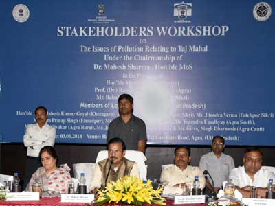 Agra: Ministry of Culture held a high-level stakeholders’ workshop on the Taj Mahal here. Chaired by the Minister of State of Culture and for Environment Dr. Mahesh Sharma, the meeting was called to discuss the issues of pollution around Taj Mahal with a focus on drawing short term and long term measures to deal with the problem and to protect the Taj from environment pollution.
