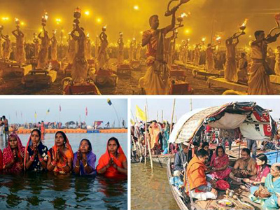 The Kumbh Mela is the world's largest peaceful gathering, drawing millions pilgrims for a ritual bath in holy rivers. This bath symbolises spiritual cleansing and renewal. It occurs four times every 12 years, rotating between Haridwar on the Ganges, Ujjain on the Shipra, Nashik on the Godavari, and Prayagraj, where the Ganges, Yamuna, and Sarasvati meet.