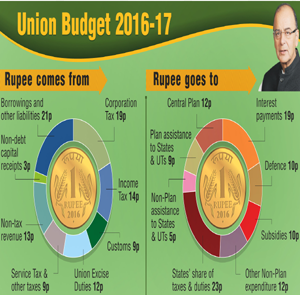 New Delhi: Major focus on agriculture and farmers’ welfare, massive mission to provide LPG connection to poor households, a new health protection scheme, increased outlay for infrastructure, ₹2.87 Lakh crore Grant in Aid to Gram Panchayats and Municipalities, setting up of 1500 Multi Skill Training Institutes and incentives for jobs creation are major highlights of the General Budget 2016-17 presented in Lok Sabha by Union Finance Minister Arun Jaitley.