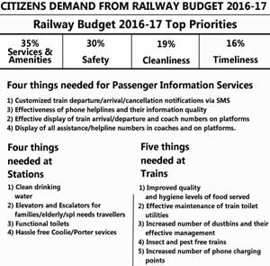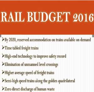 New Delhi: Presenting the Railway Budget 2016-17 in the Parliament, Railway Minister Suresh Prabhu said the budget seeks to fulfil the long-felt desires of the common man such as reserved accommodation on trains available on demand, time tabled freight trains, high end technology to improve safety record, elimination of all unmanned level crossings, improved punctuality, higher average speed of freight trains, semi high speed trains running along the golden quadrilateral, zero direct discharge of human waste by the year 2020. Highlights Of Railway Budget are as follows…