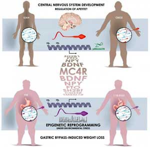 Turns out dads are also eating for two. A study published recently in Cell Metabolism reveals that a man's weight affects the heritable information contained in sperm. The sperm cells of lean and obese men possess different epigenetic marks, notable at gene regions associated with the control of appetite. The comparisons, which included 13 lean men and 10 obese men, offer one biological explanation for why children of obese fathers are themselves more predisposed to obesity.