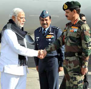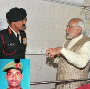 New Delhi: Prime Minister Narendra Modi visited Siachen avalanche survivor, Lance Naik Hanumanthappa, in hospital. The soldier was airlifted from the glacier and admitted to the Army R&R Hospital in New Delhi earlier. (Read in Hindi: लांस नायक हनुमनथप्पा से अस्पताल में मिले प्रधानमंत्री)