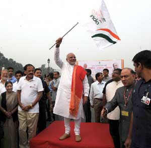 New Delhi: Flagging off the "Run For Unity" on the occasion of Sardar Patel Jayanti, the Prime Minister Narendra Modi recalled the mantra of "Ek Bharat: Shresth Bharat" and said that Sardar Vallabhbhai Patel gave us "Ek Bharat" (United India), and we should all work towards creating "Shresth Bharat" (Foremost India).