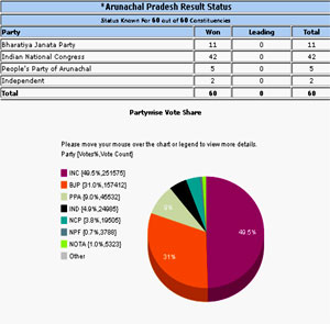 New Delhi: Assembly Elections Results of Arunachal Pradesh have been declared. Indian National Congress has got clear majority in the house.
