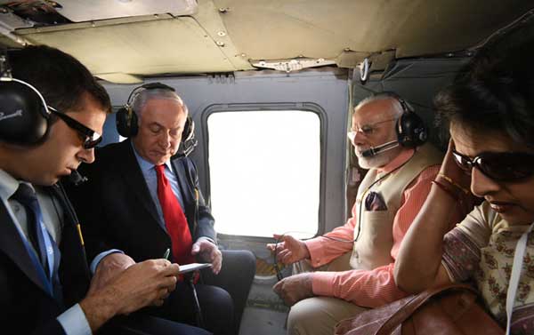 Prime Minister Narendra Modi leaves for Haifa to pay homage to Indian soldiers at Haifa, liberated in WWI, in Israel on July 6. The Prime Minister of Israel Benjamin Netanyahu is also seen.