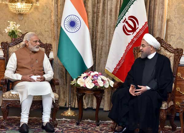 Prime Minister Narendra Modi in restricted tete-a-tete with the President of Iran Hassan Rouhani in Jomhouri Building at Saadabad Palace in Tehran on May 23.