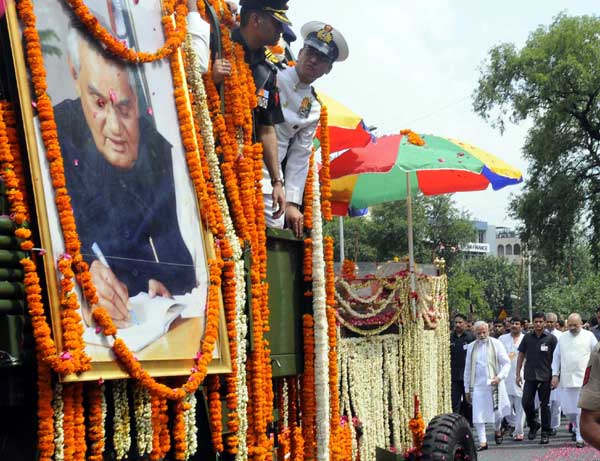 Read MorePrime Minister Narendra Modi and other dignitaries at the funeral procession of the former Prime Minister Atal Bihari Vajpayee in New Delhi on August 17.