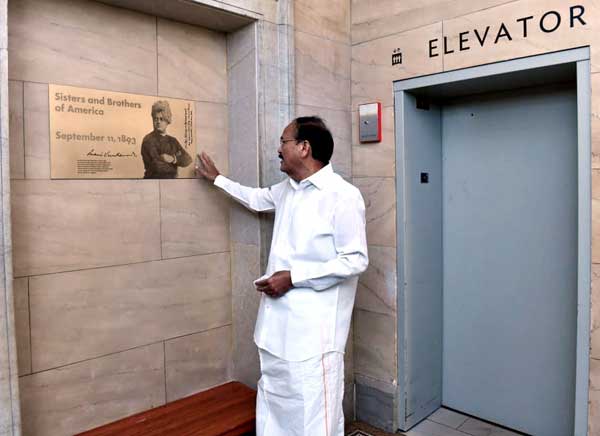 Read MoreVice President M. Venkaiah Naidu at the Swami Vivekananda memorial, at the Historic Art Institute of Chicago, the place where Swami Vivekananda delivered his speech in 1893 in Chicago, USA on September 9.