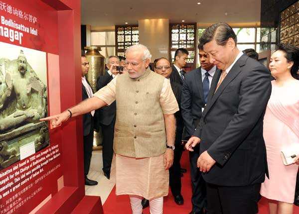 Read MorePrime Minister Narendra Modi sharing the rich Buddhist heritage of Gujarat with the Chinese President Xi Jinping and First Lady Peng Liyuan through an exhibition set up, at Hyatt Hotel, Ahmedabad on Wednesday.