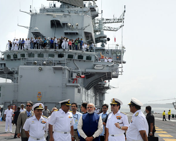 Read MorePrime Minister Narendra Modi on the deck of INS Vikramaditya in Goa on Saturday. The Chief of Naval Staff, Admiral RK Dhowan is also seen.