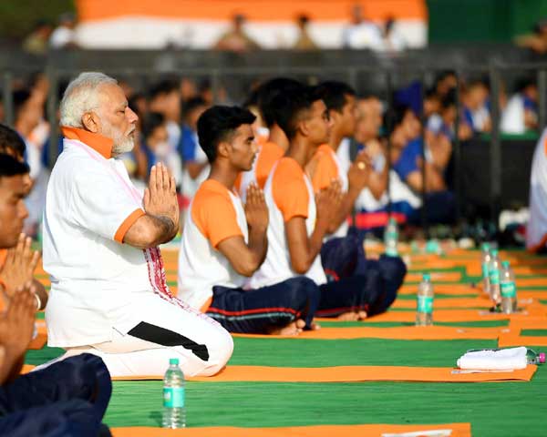 Prime Minister Narendra Modi participates in the mass yoga demonstration on the occasion of the 4th International Day of Yoga 2018, at the Forest Research Institute in Dehradun, Uttarakhand on June 21.