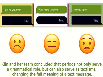 Read MoreEmoticons, irregular spellings and exclamation points in text messages aren’t sloppy or a sign that written language is going down the tubes — these “textisms” help convey meaning and intent in the absence of spoken conversation, according to recently published research from Binghamton University, State University of New York.