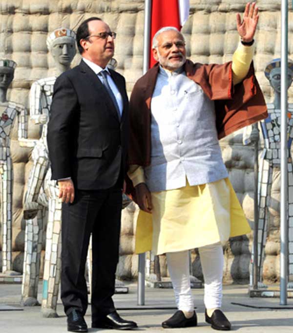 Modi With Hollande At Nek Chand Rock Garden In Chandigarh